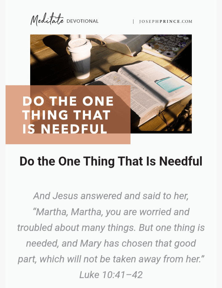 The one thing that is needful is for you to sit at Jesus’ feet, and keep your eyes, ears, and heart on Him