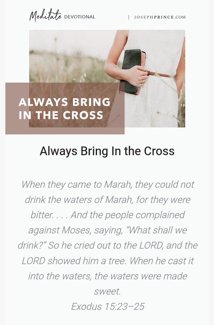 Today, in the midst of the bitter waters of your pain or condition, I want to encourage you to bring in Jesus and see what He did for you at the cross. Relief and healing don’t come from dwelling on your pain. Bring in the tree—the cross of Jesus—and see your bitter waters become sweet!