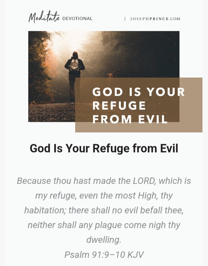 Gospel Corner 29/04/25 The prayer of protection declares, “Because you have made the LORD, who is my refuge, even the Most High, your dwelling place, no evil shall befall you” (Ps. 91:9–10, boldface mine). The Word of God does not say that no evil shall befall “the world.” It says that no evil shall befallContinue reading “In the natural, the world is getting darker and darker. But don’t look around you and be distressed. Don’t look inside you and be depressed. Look to the Lord Jesus and be completely at rest!”