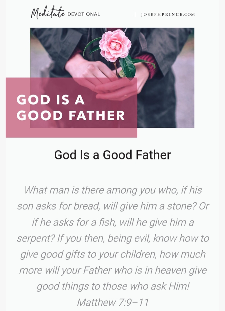 Joel Osteen Ministries Today’s WordToday’s Scripture Don’t become so well-adjusted to your culture that you fit into it without even thinking. Instead, fix your attention on God. You’ll be changed from the inside out. Readily recognize what he wants from you, and quickly respond to it.Romans 12:2, MSG Jesus dealt with this question simply byContinue reading “My friend, if your child asks you for bread, would you give him a stone? Certainly not. You would give him the best bread you can find. How much more then, will your heavenly Father give good things to you when you ask Him!”