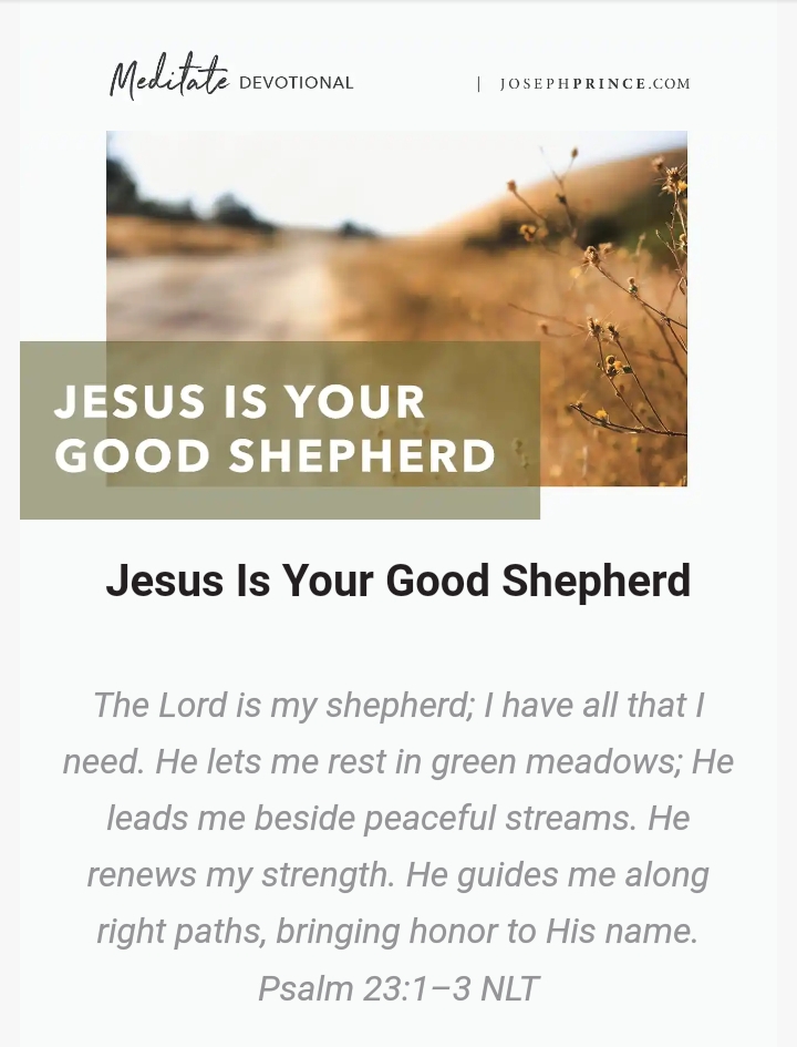 27/08/23 When I was a young believer, I heard a preacher say, “In order to draw a straying lamb to him, a shepherd will break its legs. When it’s unable to walk, he will nurse the lamb back to health. Once it’s healthy again, the lamb will be attached to him.” That terrifying picture ofContinue reading “GOSPEL CORNER:WHEN HE IS YOUR SHEPHERD, YOU WILL NOT WANT FOR ANYTHING. HE IS YOUR SUPPLY OF EVERYTHING YOU NEED.”