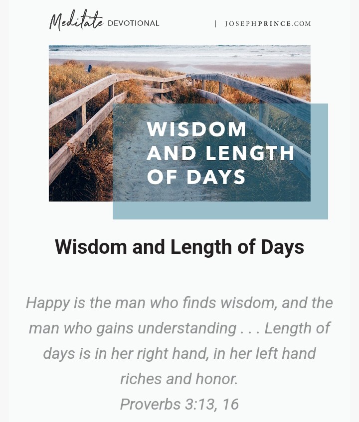 Gospel Corner 28/01/25 JOEL OSTEEN MINISTRIESToday’s Word Today’s Scripture“For I will restore health to you and heal you of your wounds,” says the LORD.Jeremiah 30:17, NKJV Scars Are SignsWe all have wounds from our past mistakes. Maybe we got off course, gave in to temptation, did things we’re not proud of, hung around the wrongContinue reading “Happy is the man who finds wisdom . . . Length of days is in her right hand, in her left hand riches and honor” (Proverbs 3:13, 16).”